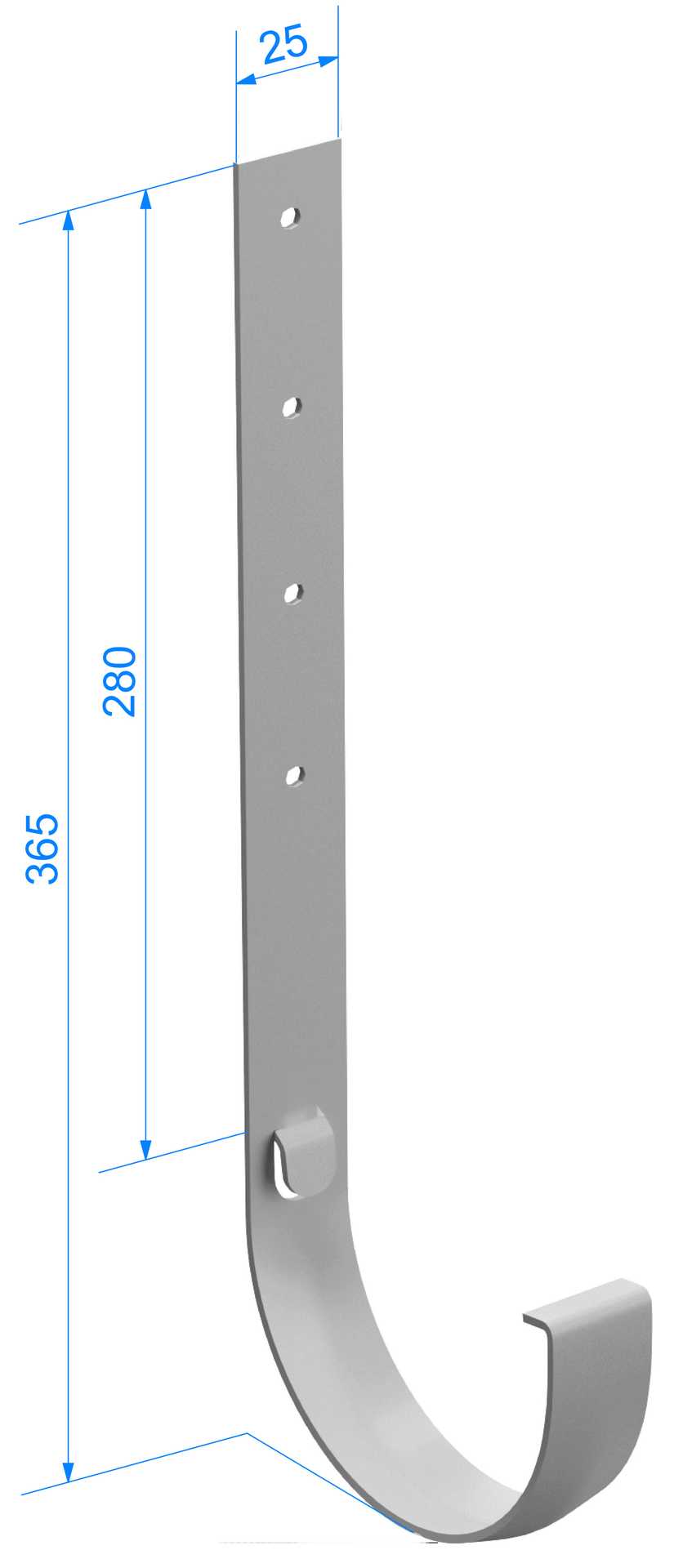 Предназначен для крепления желоба на кровлях без лобовой доски. Длина опорной части кронштейна - 280 мм.